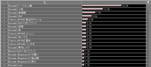 数だけ見るとトーマが圧勝なんだけど、MWはあらゆるバリエーションで検索されているのでまとめてみたら大して違いはなさそうだ。つかMWのが多いかもしれない。