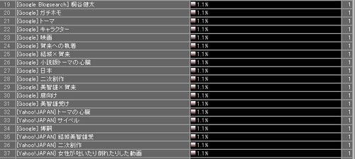 最近いろんな検索ワードでいらしゃるお客さんが多いのでどれどれどんなもんかのと思って解析ツールをチラ見した。ら。